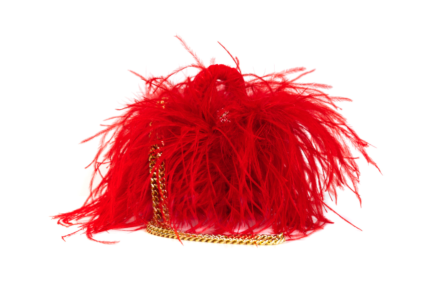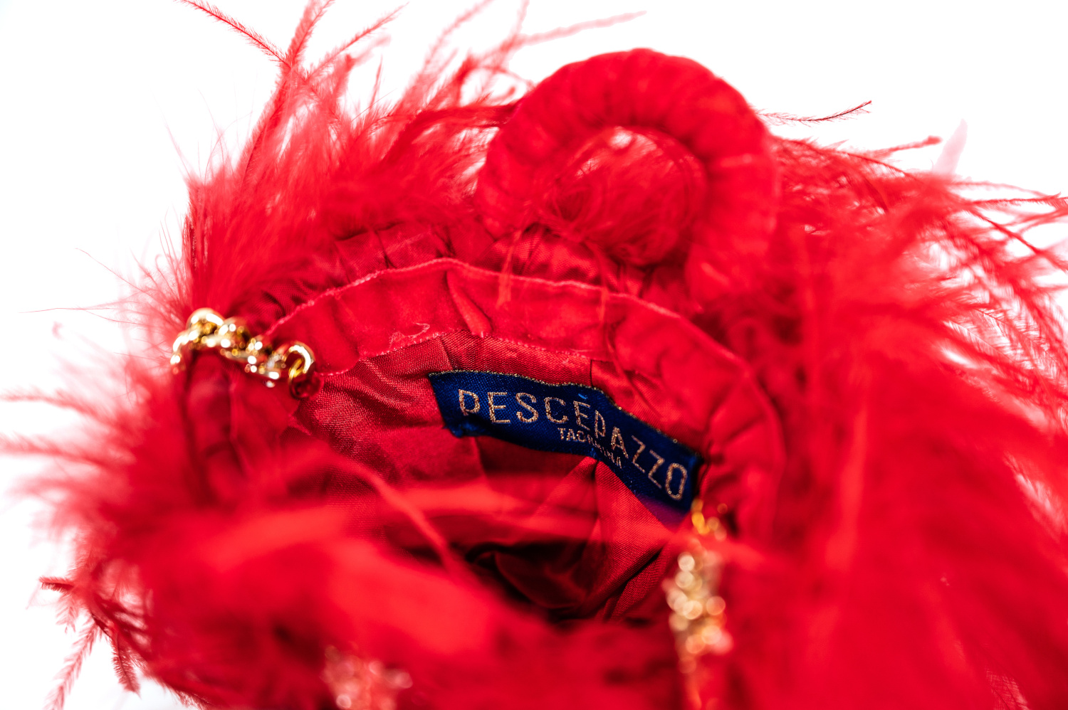 Foglie di palma nana, shantung di seta, piume di struzzo, nastro di velluto.