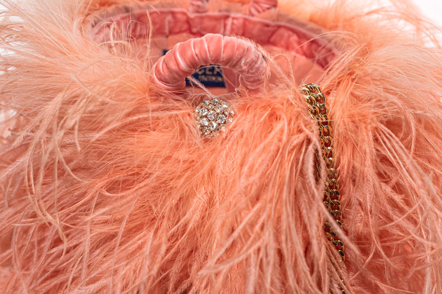 Foglie di palma nana, shantung di seta, piume di struzzo, nastro di velluto.