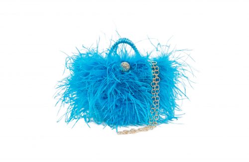 Meravigliosa coffa siciliana intrecciata a mano con foglie di palma nana dell’isola. La borsa è interamente rivestita in shantung di seta color rubino e arricchita da piume di struzzo dello stesso colore. I manici e le altre finiture sono realizzati in nastro di velluto e la coffa è impreziosita da un bottone gioiello e da una tracolla a catenella dorata.